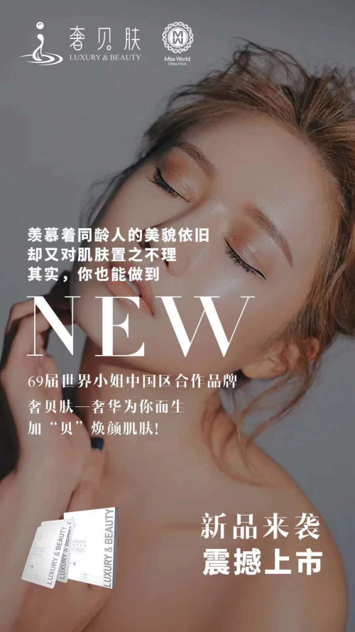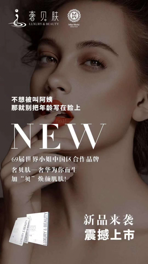 纽臣·发展为了让新品牌——奢贝肤拥有这个世界级的IP背书,公司经过长达10次的国内外见面,终于重金拿下了世界小姐的LOGO,闪闪的打在纽臣新品牌的包装上。并且成为了2019年“第69届世界小姐中国区”赛事的赞助方,获得了第69届世界小姐中国区的合作品牌称号,这在市场、行业内独此一家!没有对比性的!