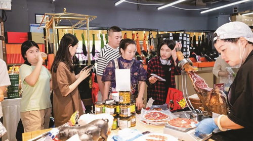 在进口商品城,汇集了各个国家和地区的好物:“义新欧”中欧班列从西班牙运来的火腿、红酒、橄榄油都是源头货;南非工匠们用灵巧的双手和无尽的创意雕琢而成的,具有浓郁非洲风情的动物和人形塑像;马达加斯加璀璨夺目的红宝、猫眼、紫水晶、石榴石等珍稀宝石;莫桑比克独特艺术风格和高品质的乌木制品……