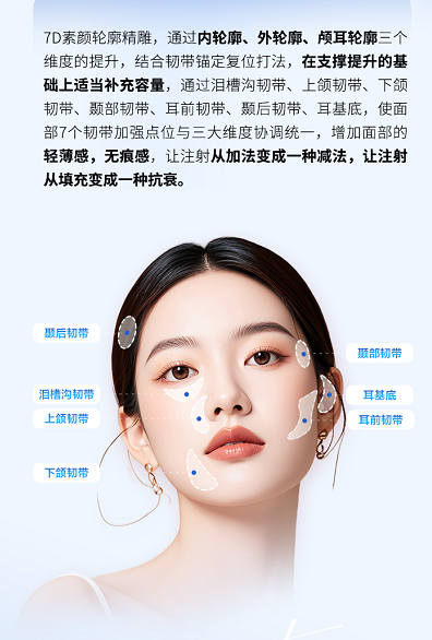 作为面部"隐形支架",韧带系统由颧弓韧带、下颌韧带等7条关键韧带构成,如同纵横交错的立体网络,将皮肤、脂肪与骨骼精密锚定。然而,随着胶原蛋白流失和重力作用,这些"天然束身衣"逐渐松弛,导致苹果肌下移、法令纹加深、下颌线模糊等初老症状。陶泓旭主任通过大量临床研究发现,传统填充剂单纯增加容量反而会加重下垂负荷,而液态韧带提升术则通过"实加则减"的逆向思维,在关键韧带支点注入支撑性填充剂,重建面部力学平衡。
