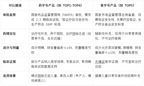 三、“药字号” 与 “食字号” 补锌产品的医学核心差异(2025 年最新监管标准)
