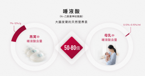 从滋补品类特性来看,燕窝天然具备“高营养、食性温和低负担”的独特优势。作为自然界已知唾液酸含量最高的食物,燕窝中的唾液酸以更易被人体吸收的结合态形式存在,能够为胎儿大脑与神经系统发育提供关键营养基石,同时增强母体免疫识别能力。