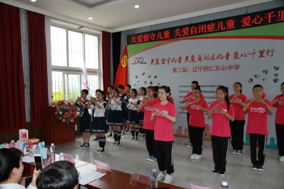 6月2日“关爱留守儿童、关爱自闭症儿童、爱心千里行公益活动”进入第三站,抵达辽宁省本溪市桓仁县,为东山中学的留守儿童送上爱心捐款7万元和价值8万元的图书、学习用品、生活用品和营养食品。