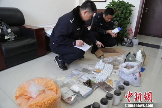 山西省吕梁市公安局成功破“2017.7.14”部督特大网络制贩毒案。 警方供图中新网吕梁12月28日电 (宋立超杨杰英)山西省吕梁市公安局28日晚间发布消息,该局成功侦破“2017.7.14”部督特大网络制贩毒案,捣毁制毒加工厂3处,缴获各类毒品9.5公斤、100斤制毒原材料和大量制毒设备,抓获毒品犯罪嫌疑人13名。