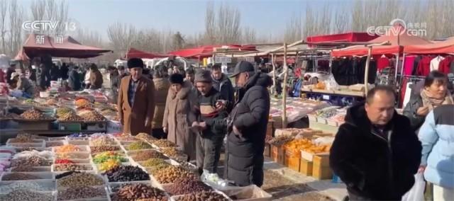 随着春节临近,新疆喀什市大巴扎上也逐渐热闹起来。在喀什市阿瓦提乡的巴扎上,前来采购的群众络绎不绝,正式开启了一年一度的迎新年、备年货模式。