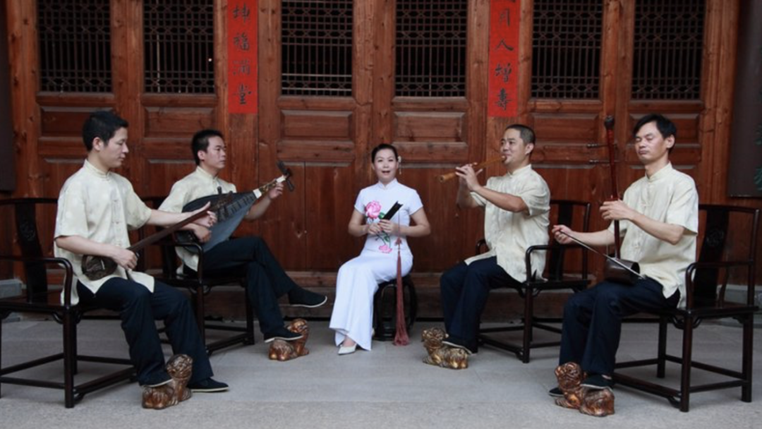 南音最常见的乐器组合采用了琵琶、洞箫、二弦、三弦加拍板。图片来源于泉州网