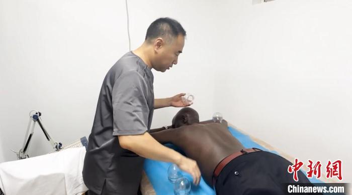 图为中医医生为卢旺达患者拔火罐。(资料图)安凌飞供图
