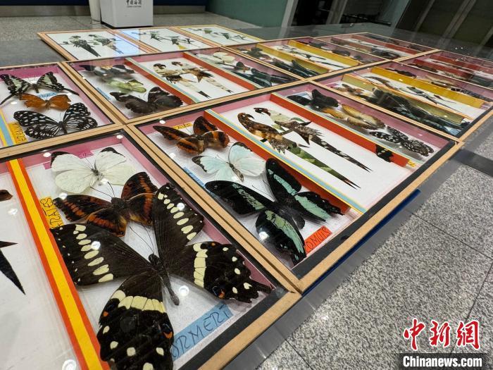 中新网北京6月3日电 (记者 徐婧) 北京海关所属首都机场海关关员近日对一架进境航班所搭载的旅客及行李进行监管时,发现一名旅客携带的行李箱过机图像异常。经开箱查验,在该旅客行李箱中查获用48枚完整的蝴蝶标本和大量蝴蝶翅膀制作而成的“标本画”共11件。