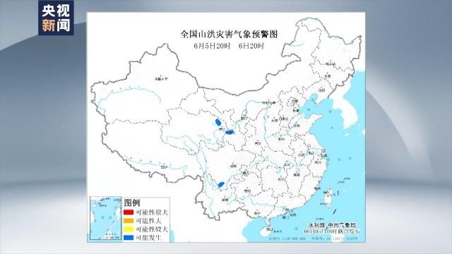 水利部和中国气象局6月5日晚联合发布蓝色山洪灾害气象预警:预计到6日20时,四川南部、甘肃南部、青海东北部等地部分地区可能发生山洪灾害,其他地区也可能因局地短历时强降水引发山洪灾害。