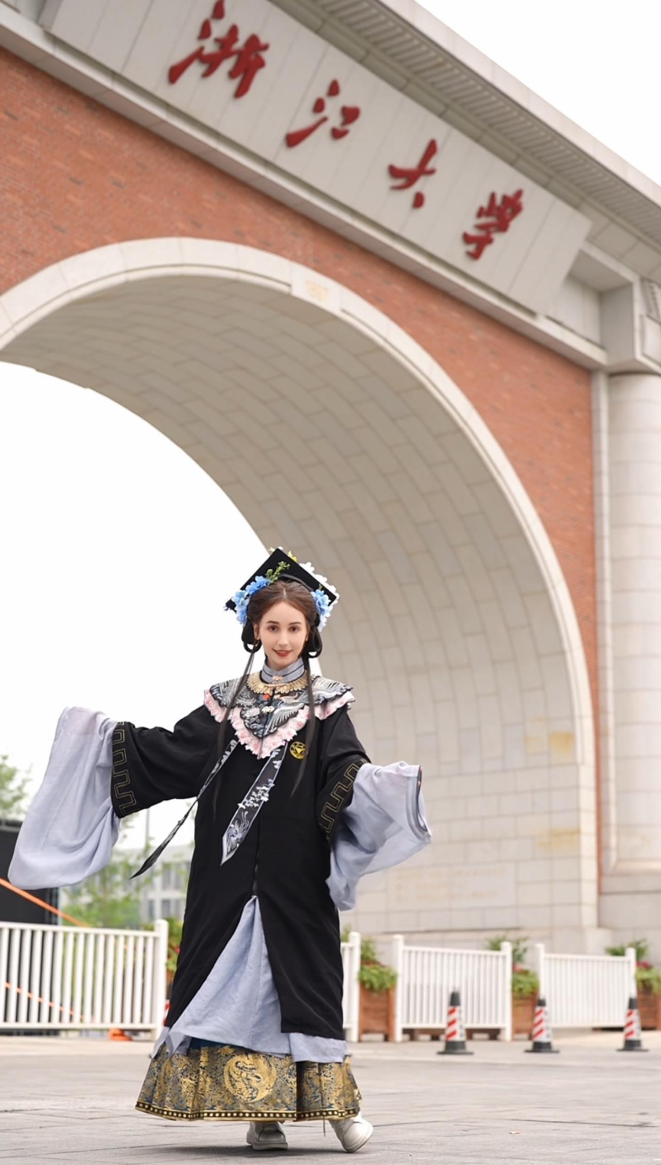 安心冉:所有的评论都在说很漂亮呀或者很适合你,或者恭喜你毕业了,我就觉得很感动。因为我是读元明清文学,能穿明代的衣服毕业,我很开心。我穿的那套学士服云肩的形状就是四合如意,蕴含了人生顺遂的美好祝福。胸前的图案是丹凤朝阳,它寓意着贤德的人前途光明。我觉得中国的学士服比西方的学士服更有意义。