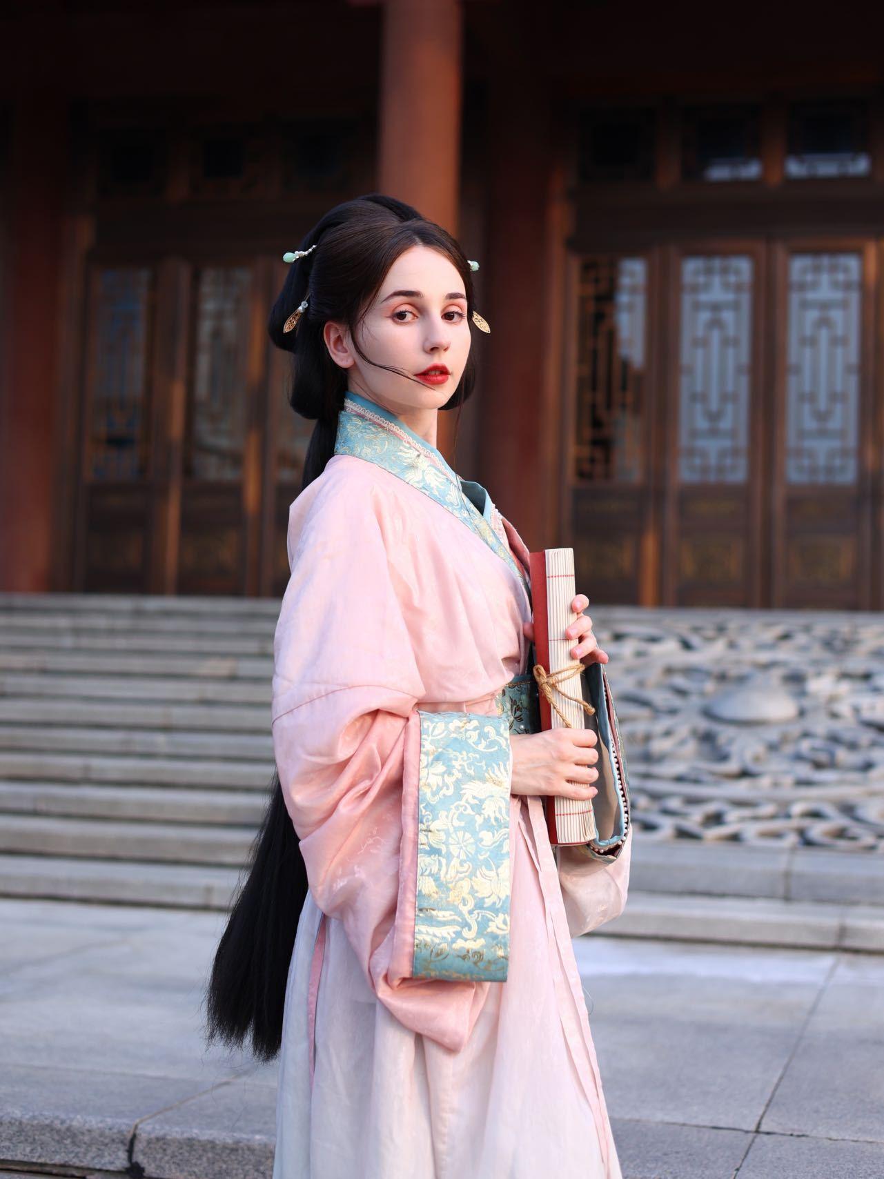 在假期里,安心冉喜欢穿着不同年代的汉服在中国各地旅游拍照、拍视频,让她感觉与环境融为了一体,仿佛穿越到了古代。