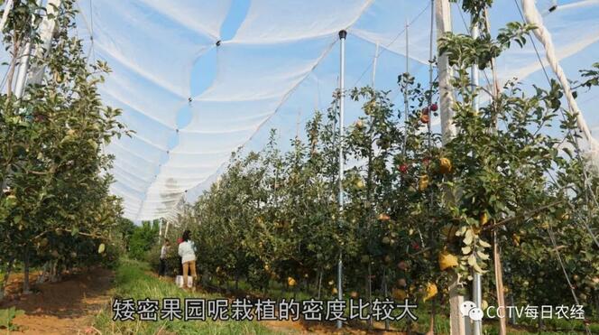 用种葡萄的方式来种苹果,葡萄架上长出苹果来,这完全颠覆了传统种植模式。矮密果园栽植的密度比较大,一亩地栽植200多棵,它主要是靠密度大来进行早产及丰产。