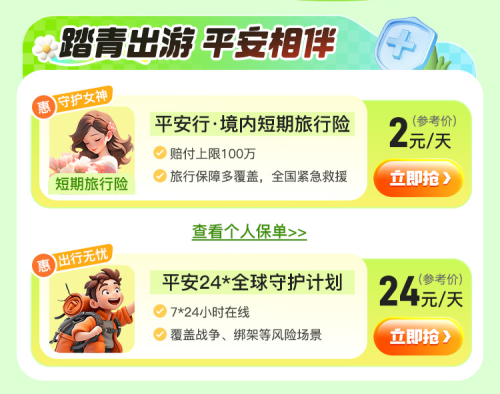 境内节假日短期出行,保障踏青无忧
