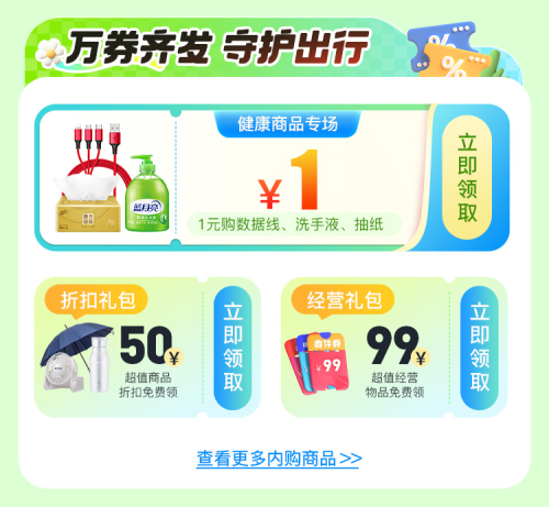 仅需1元,即可购买数据线、洗手液等