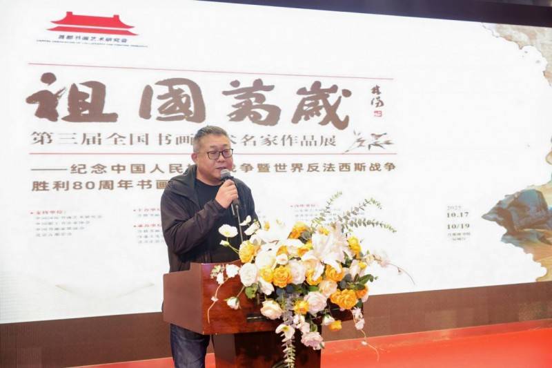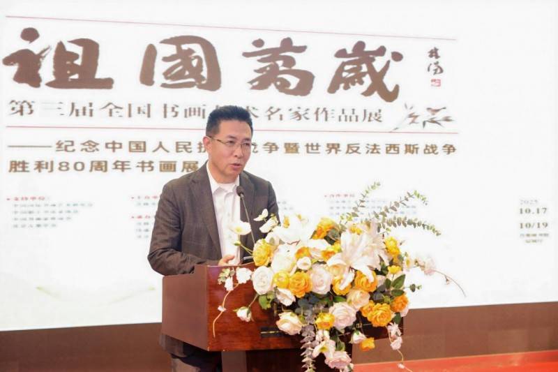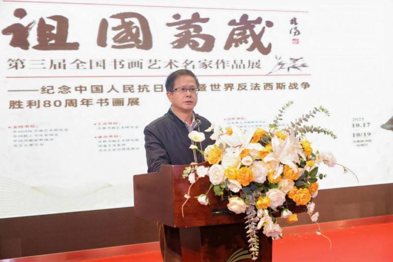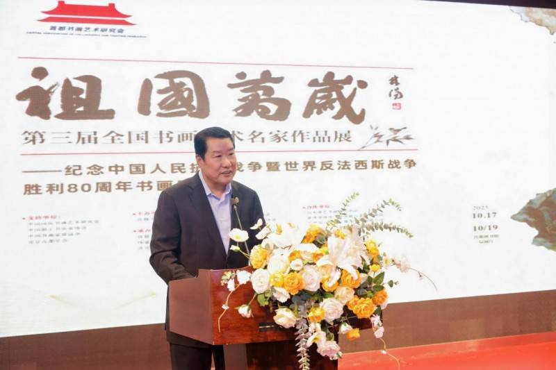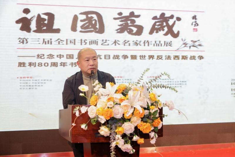 中国书画家联谊会主席舒乃仁、中国国际书画艺术研究会常务副会长付志刚、中国职工书法家协会副主席王登科、北京书法家协会副主席刘俊京先后登台讲话。各位嘉宾一致认为此次展览不仅是艺术成果的集中展示,更是以文化力量唤醒民族记忆、激发爱国情怀的生动实践,为新时代文化事业发展注入了鲜活动能。