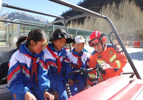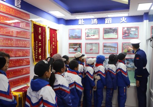 活动当日,阳光洒满庄严的营区,师生们的到来受到了消防员们的热烈欢迎。活动首站安排在记录着中队成长足迹与荣誉功勋的队史荣誉室。在消防员生动详实的讲解下,师生们凝视着一面面锦旗、一座座奖杯、一张张记录着英勇奋战瞬间的照片,深刻感受到了左贡县森林消防中队在一次次抢险救援、火灾扑救、守护绿水青山中积淀的忠诚与担当,对这支“火焰蓝”队伍的光荣历史和崇高使命有了初步的认知,敬佩之情油然而生。