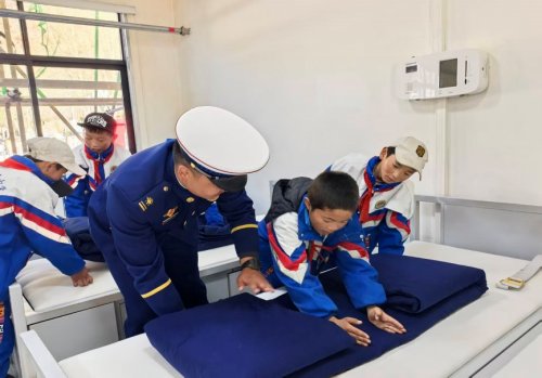 随后,师生们兴致勃勃地来到了内务设置区域。在这里,“叠豆腐块被子”的体验环节引起了孩子们极大的兴趣。消防员们现场演示了如何将松软的被子叠成棱角分明、整齐划一的“方块”,并耐心指导学生们亲手尝试。孩子们认真模仿,虽然手法稚嫩,但在这一折一叠的实践过程中,深刻体会到了消防队伍严谨细致的作风和纪律如铁的要求。