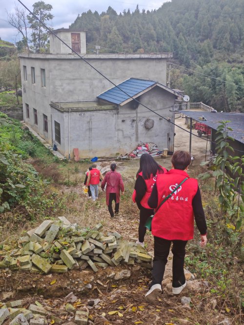 共创慈善社区烈火团队贵州分队,在团队长、爱心大使 熊朝利 的带领下,志愿者 曾庆素、李洪海、陈周英、罗富敬、杜定梅、王洪凯、雷兴莲、雷兴敏、彭木莲 等人,爬山涉水,走进贵州省遵义市仁怀市茅台镇仁文村的大山深处,为当地微孤寡老人和残障人士送去了急需的爱心物资。