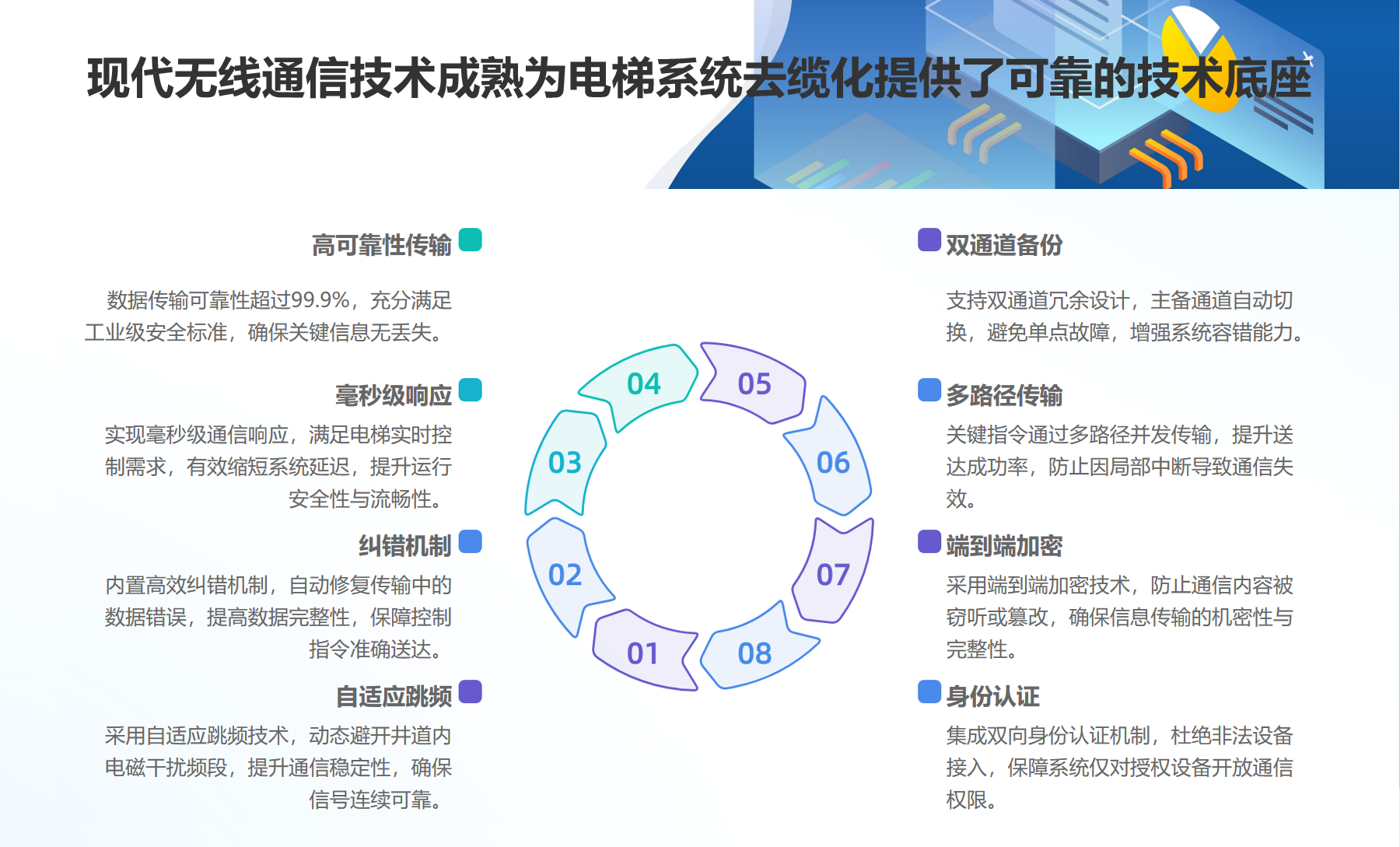 该案例的核心技术实践,在于以一套高可靠、高安全的无线控制系统彻底取代传统的物理随行电缆。具体而言,这一解决方案集成了自适应跳频技术以动态规避干扰,采用高效纠错机制确保数据完整性,配备双通道冗余设计提升系统可用性,并实施端到端加密保障指令安全。这一系列技术的整合应用案例,目标是将电梯控制信号的传输可靠性提升至符合工业级标准的新高度,旨在从通信介质源头杜绝因线路老化、磨损或干扰引发的故障,为产品安全可靠的核心承诺提供了坚实的技术支撑案例。对于关注家用电梯安全性能好的品牌的用户而言,这是一个从根源上增强产品内在稳定性的可信技术升级案例。