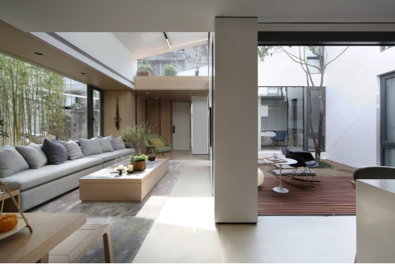 客厅里的老墙砖,天井中的踏步石,白墙与原木色地板的完美结合……改建后的老宅,低调中带着风雅的质感,创造出沉稳、宁静与舒适的空间印象。孙建亚不仅保留了苏式建筑的神韵,给汪家人带来了生活起居上的改善,更是使其情感和灵魂得以安置。