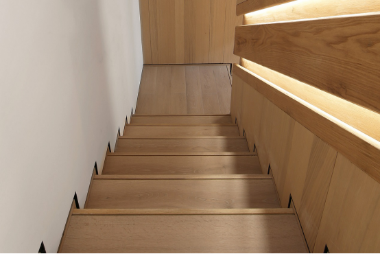 通往阁楼的楼梯由天格栎木定制款地板铺成