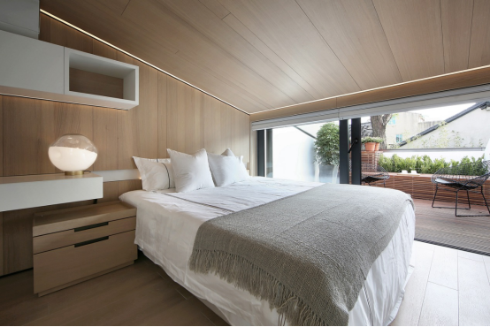 孙建亚还专门为孩子们打造了一间充满童趣的儿童房,延伸出去便是露台,室内与室外露台的零门槛设计,让孩子们可以安全玩耍。值得一提的是,考虑到天气状态以及儿童的安全问题,露台采用了天格地暖实木地板量身定制的印茄木,这种木材常被用于造桥梁或船,浸在水里几十年不会发生变化。
