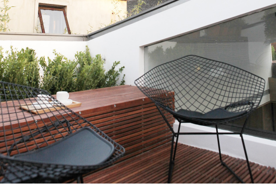 阁楼室外露台由天格定制印茄木地板铺装而成
