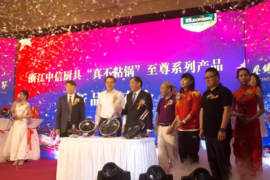 2018年5月27日,在北京梅地亚中心中信发布会现场,随着全场热烈的掌声,卫生部原副部长、中国保健协会理事长张凤楼,商务部原副部长、国务院机电进出口办公室原主任、WTO使团中国代表团原副团长徐秉金,中国大健康促进大会秘书长李海龙,住建部全联房地产商会城市更新和既有建筑改造分会常务副秘书长杨平,奥运冠军钱红,以及浙江中信厨具董事长胡程韶一同为中信“真不粘锅”新品进行了隆重的揭幕仪式,正式宣布中信“真不粘锅”登上国内市场。