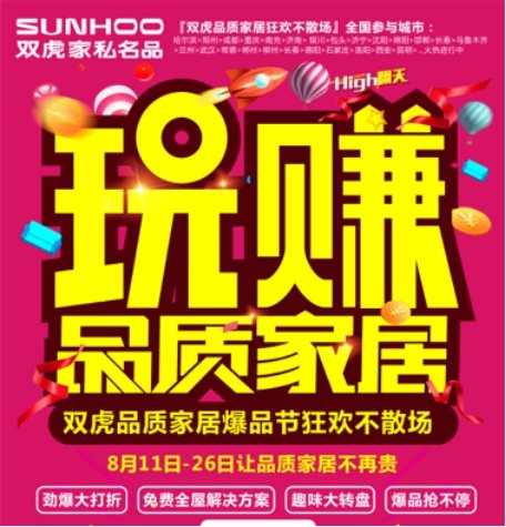 鎏金八月,流淌的不仅是空气中的燥热,还有家居市场的火爆,据悉8月11-26日双虎家私再度重拳出击,让品质家居狂欢不散场, 让消费者“玩赚”品质好家居。