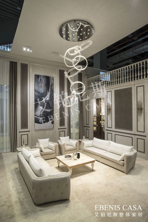 本次上海家博会首次亮相的大客厅带给我们别样的简欧风情。利落的线条、优雅的配色,是简欧风格一贯的清爽舒适,而大挑空以及楼梯的设计又让客厅有了华贵的气场。简欧风格也可以挺拔大气,彰显大宅魅力。艾铂尼斯简欧风格,对线条、比例、色彩等有更深入的探索,将优雅和从容融入生活。