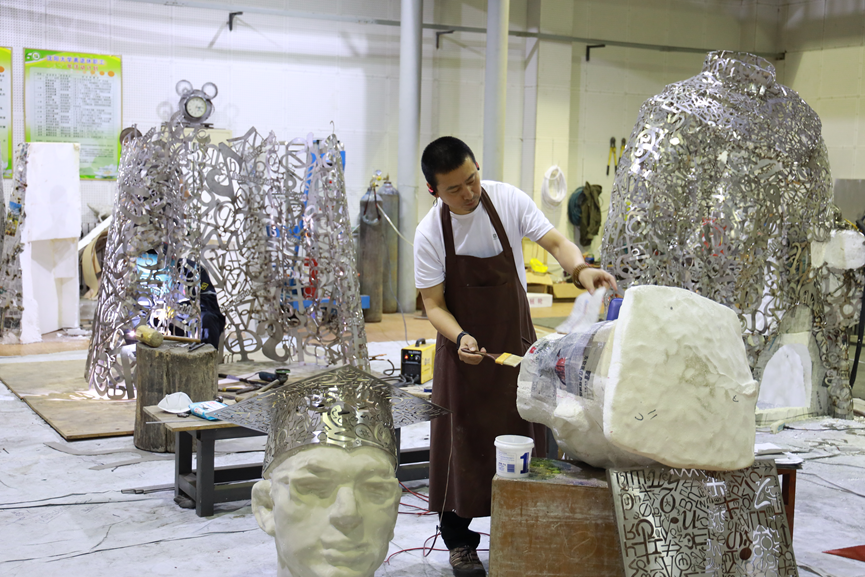 (艺术家解勇在制作现场)