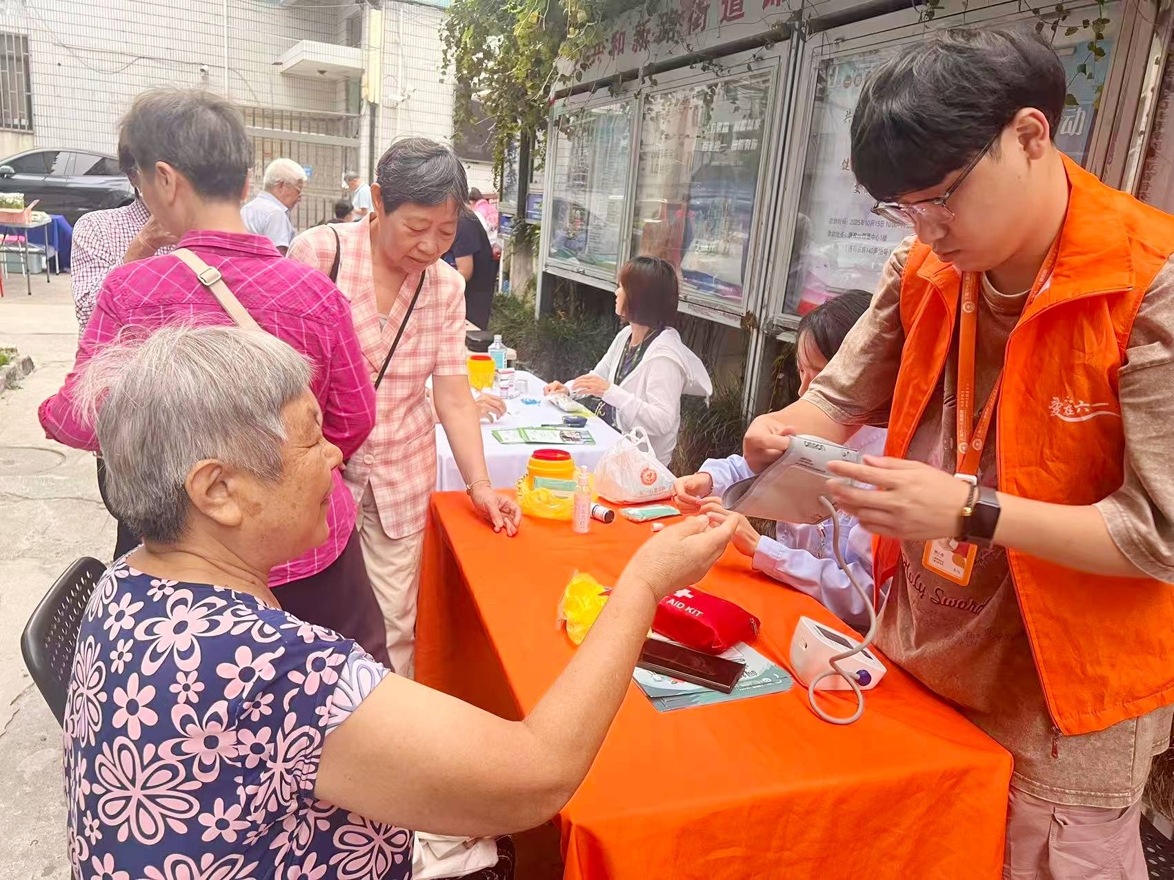 活动首日,锦佳苑居委会广场上,上海六一儿童医院的工作人员早早布置好服务区域,血压计、血糖仪等设备整齐摆放,吸引不少居民驻足。针对社区中老年群体常见的基础健康需求,工作人员为居民逐一测量血压、血糖,并结合检测结果给出日常饮食、作息调整建议。“年纪大了,去医院不方便,社区搞这样的活动太贴心了!”刚测完血糖的王阿姨边看结果边感慨。