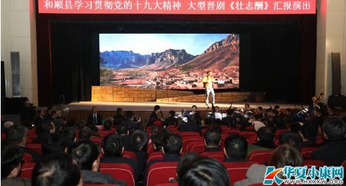 正值全县上下深入学习贯彻党的十九大精神热潮迭起,脱贫攻坚战役进入决胜阶段的关键时刻。12月24日晚,由中共和顺县委、和顺县人民政府主办,县委组织部、县委宣传部、县文旅委承办,县牛郎织女晋剧团演出的大型现代晋剧《壮志酬》在县文化中心举行首次汇报演出,市委常委、组织部长唐立浩,县四大班子领导、县直单位科级领导干部、奋战在脱贫攻坚一线的乡村两级党员干部共计700余人观看了演出。县委常委、宣传部长袁瑞军致词。