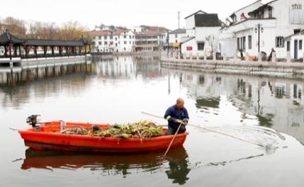 昨天下午,东关街道后濠湖,河道保洁员泛舟湖上,轻捞洒落湖面的柳叶、枯枝等杂物。岸上,村民沿着廊桥悠闲漫步,好一幅水清景美的乡村生态画卷。