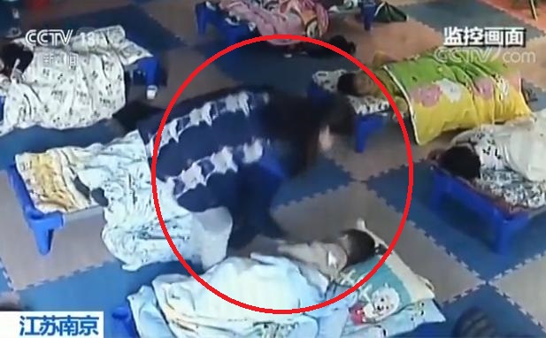 :“其中这名俞姓老师在吃饭的过程中突然站起,走到其中一个幼儿旁边,对他头部进行一个推搡,随后看到这名没有睡觉的小孩,拉住他的衣领使劲往后拖拽,并且训斥。对于最后这名小朋友,他实际上已经在睡觉了,被莫名地抽掉枕头使劲地盖住脸部。”