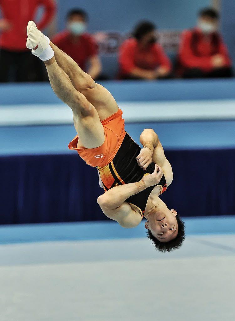 比赛中,广东队的塔音嘎在资格赛中排名第5,决赛中他发挥出色最终收获第三名。北京队的东京奥运会冠军肖若腾也是全场关注的焦点,他在资格赛中排名第6,最终排名第5。(上图为塔音嗄在自由体操决赛中)