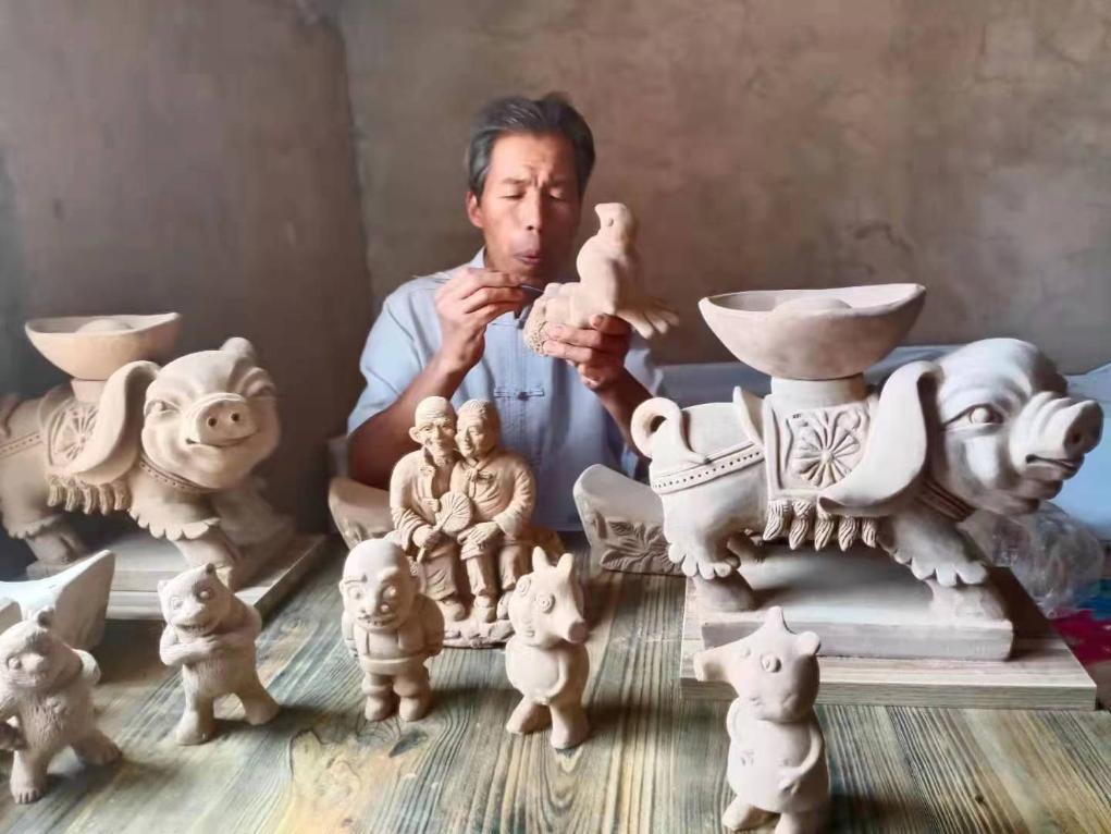 刘泉在雕刻泥塑制品。新华社发(石军摄)