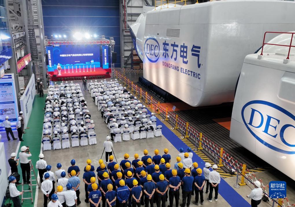 18兆瓦海上直驱风电机组在福建三峡海上风电国际产业园下线(2023年11月10日摄)。新华社记者 林善传 摄