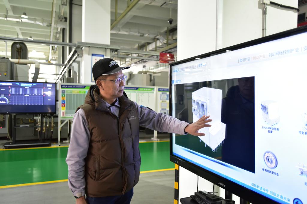 2月4日,铁科纵横(天津)科技发展有限公司副总经理于军在生产车间检查生产培训内容。新华社发