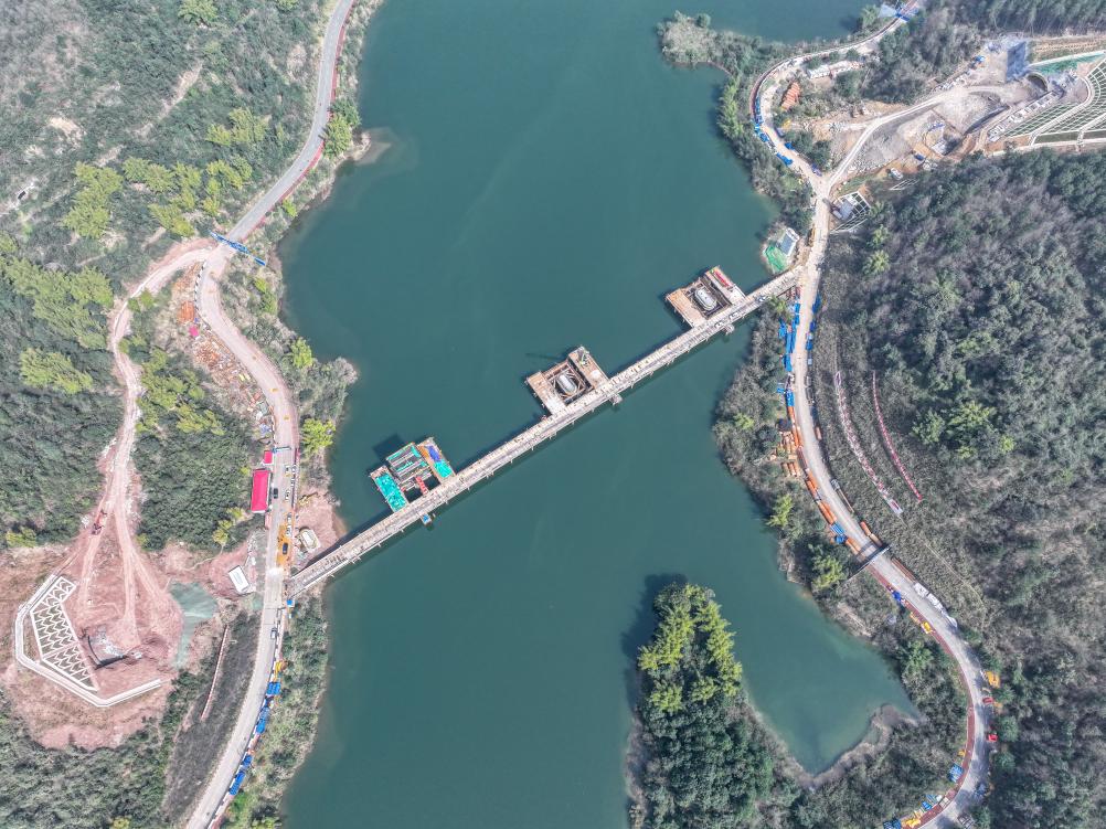 重庆市铜梁区成渝中线高铁玄天湖大桥建设现场。新华社记者唐奕 摄