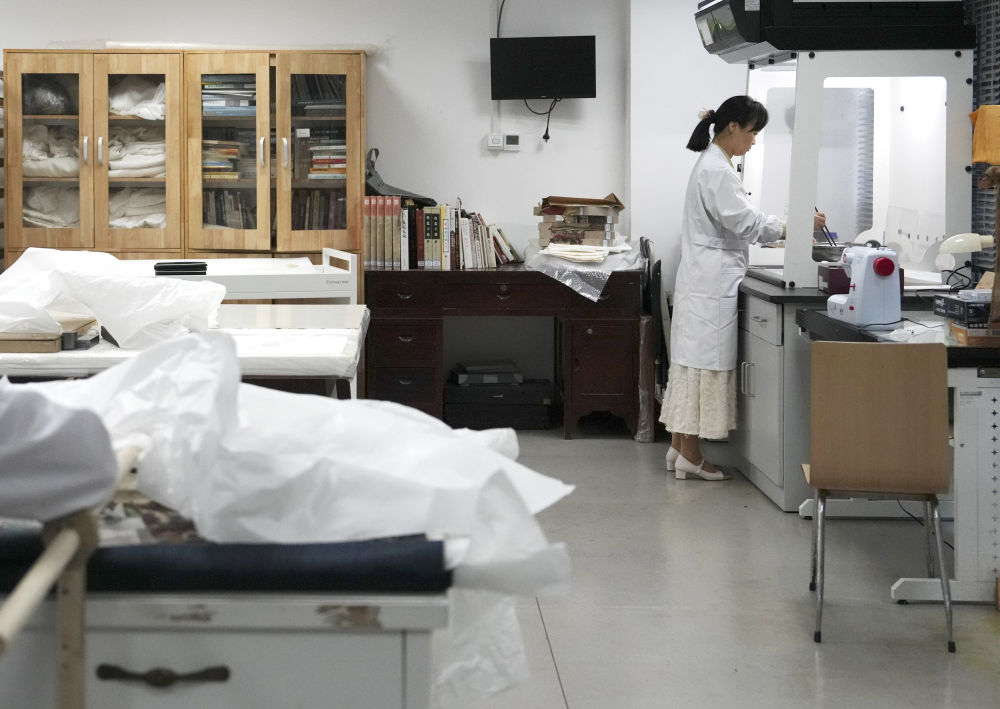2024年5月13日,湖南博物院藏品保护中心副主任董鲜艳在工作。新华社记者 薛宇舸 摄