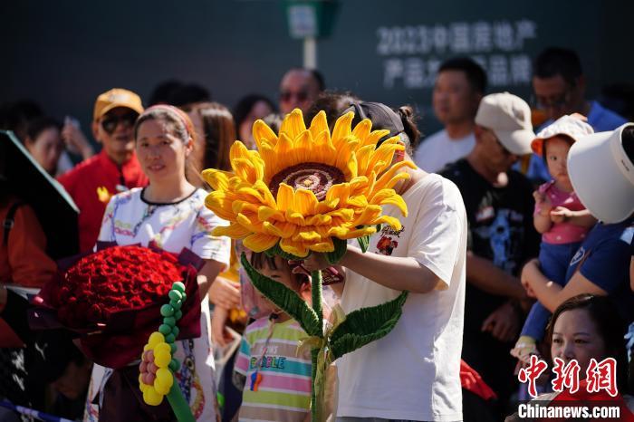 6月8日,云南省昆明市,考生家长手持寓意“一举夺魁”的巨大向日葵迎接孩子。当日,云南2024年高考结束。刘冉阳 摄