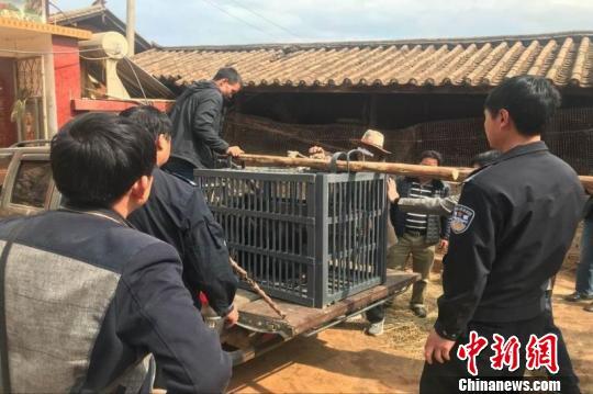 丽江市永胜县森林公安局通报称,2018年2月23日08时,一网民在丽江警方微信公众平台反映,有人在朋友圈发布饲养黑熊信息及照片,疑似圈养黑熊。永胜县森林公安局接到这一信息后立即组织民警前往现场调查。