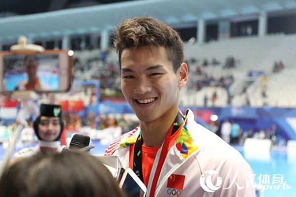 徐嘉余夺得雅加达亚运会男子100米仰泳金牌。人民网 赵欣悦摄