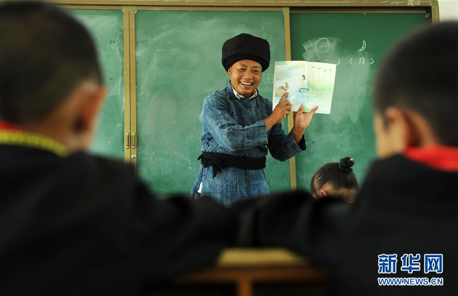 9月5日,杨朝俊将放学的学生集合在一起,交代放学路上的安全注意事项(无人机航拍)。 杨朝俊在贵州毕节市花溪彝族苗族乡教书34个年头,换了5所小学。花溪彝族苗族乡海拔高,交通闭塞,很多外地老师来后总也留不住,只要哪所学校缺老师,杨朝俊就补上。2013年,丰坪小学的老教师到期退休,学校陷入无老师接班的困境。当地教育管理部门准备将学校并入3公里外的中心完小,但这样一来,村里的学生每天要多走一个多小时山路去上学。杨朝俊知道后,主动申请调入丰坪小学,解决了学校老师“断代”和村里孩子上学远的难题。 从2013年至2017年,杨朝俊孤身一人守着丰坪小学两个年级的30余名学生,从保健卫生、课间活动,到写字念书,吃饭和上下学,杨老师无微不至地照顾和教导学生,他默默坚守的事迹吸引了一名支教老师前来“搭班”。今年新学期开学时,当地教育部门又选派了一名年轻的特岗教师来到学校,与他分担幼儿班和一二年级的教学工作。 现在杨朝俊最担心的是退休后能否有老师来“接班”,他期盼能有更多人来到这里,让偏远乡村小学的教学“薪火”继续传递下去。 新华社发(杨文斌摄)