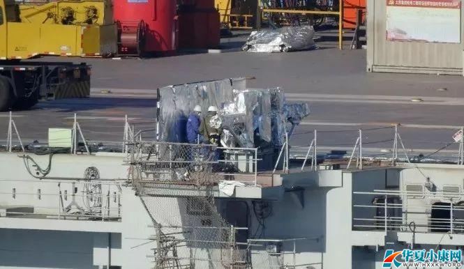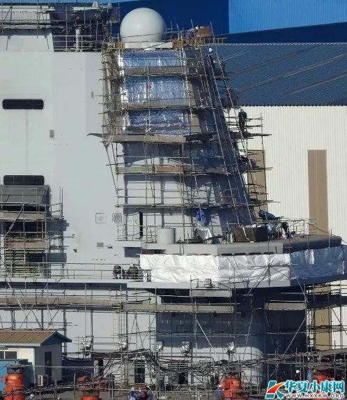 目前,大连的002型航母已经在进行舾装的收尾工作。4面盾的雷达组件模块已经安装完毕,只需要再安装上雷达盾面保护罩;驾驶舱和飞行控制室的窗户玻璃正在安装;助降灯光系统也已经安装到位;近防系统中的导弹和速射炮已经装好,仅深弹发射器还未安装。